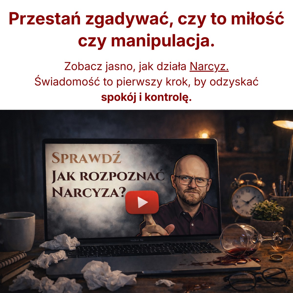 Przygotowałem szkolenie "Jak rozpoznać Narcyza?” z myślą o osobach, które cierpią w związku, ale nie do końca potrafią jeszcze zrozumieć przyczynę tych cierpień. Liczę na to, że moje szkolenie Wam pomoże.